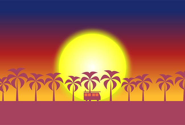 Canvas落日下开车动画特效是一款基于基于HTML5 Canvas绘制的晚霞落日海边开车行驶的路上,开车旅行卡通场景特效。