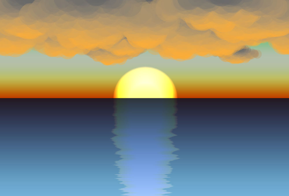 海边日落水面倒影CSS3特效是一款基于HTML5 Canvas绘制的海面上日落晚霞倒影特效。