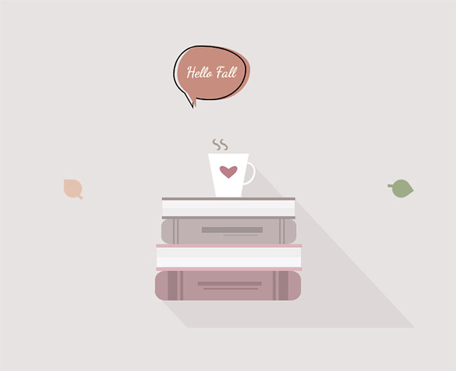 CSS3休闲时光落叶动画特效是一款纯css3实现的卡通书本咖啡,秋天树叶飘落动画特效。
